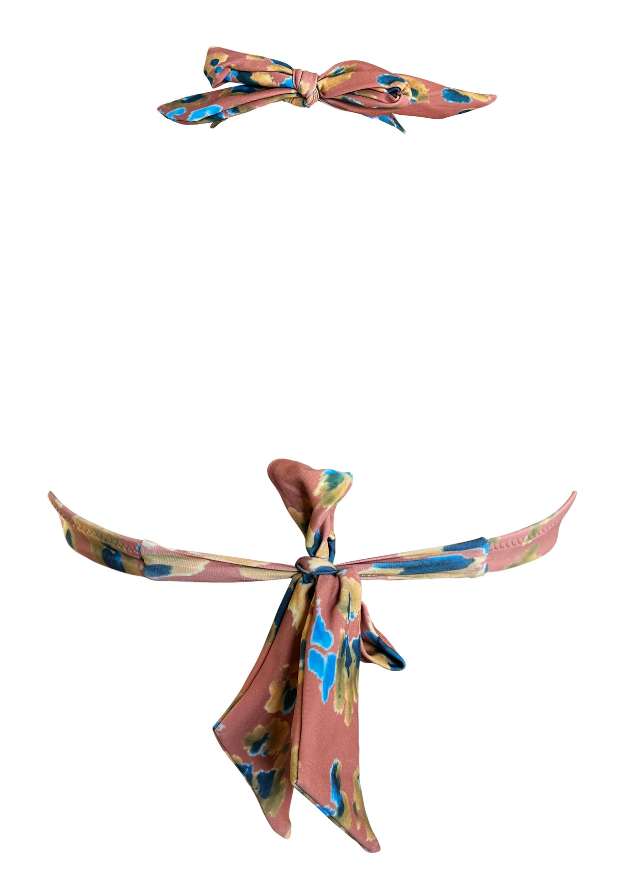 Läcker djurmönstrad bikini topp med bygel och sköna band att knyta i nacken ch där bak ger extra bra passform. Bruna toner varvat med blågröna och turkosa stänk är perfekt till solbrännan!