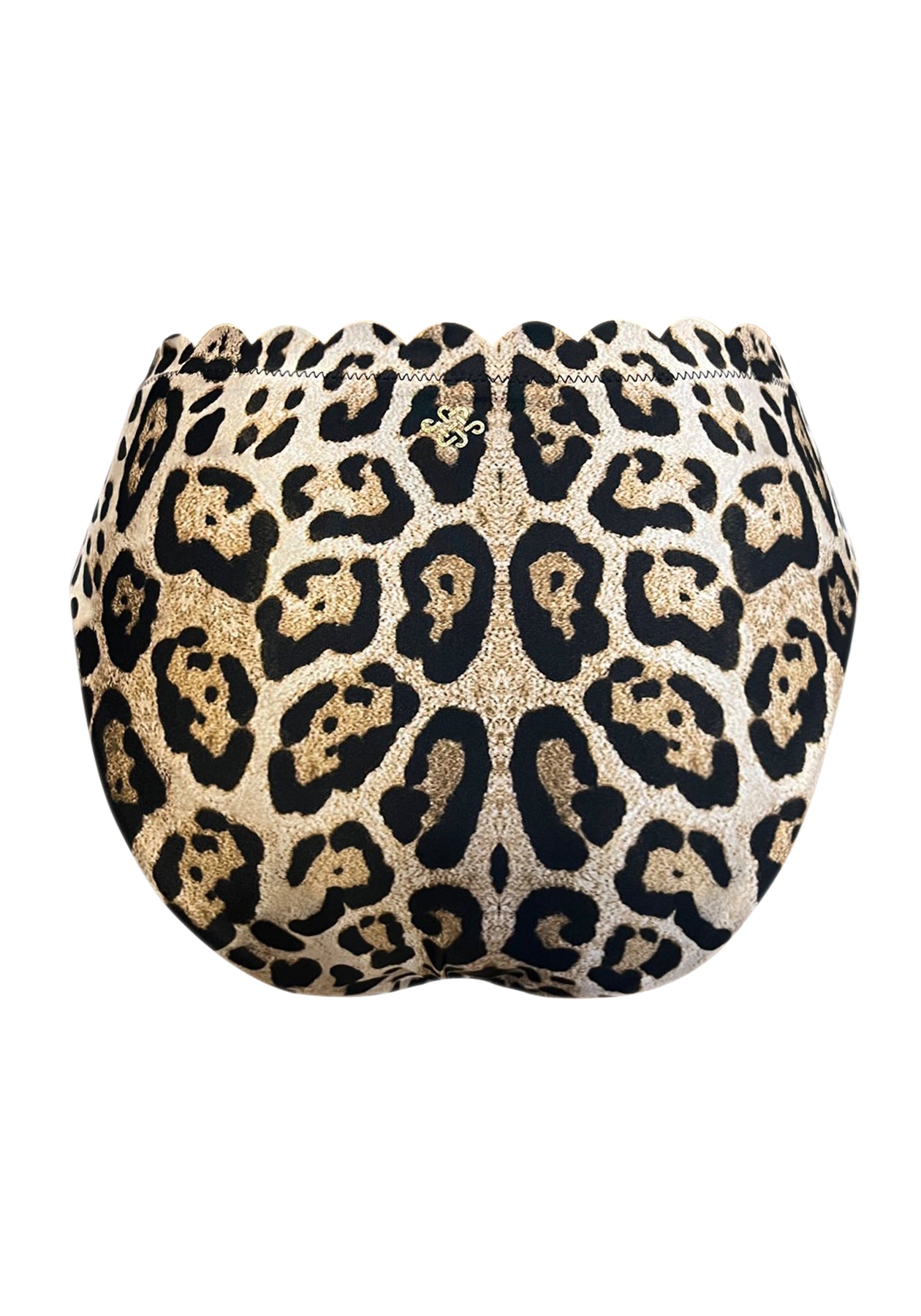 Äntligen kommer vår bästsäljande Venus halter bikini i leopardmönster. Alla djungelkatter kan nu vara lugna! Vår mid rise byxa går upp lite mer än en hipster och har söm-lösa mjuka kanter runt benet, och den vågformade kanten längs midjan. Guldig loveknot detalj mitt bak. Matcha byxan med Venus Halter topp, triangeltoppen eller vår bandeau topp. Återanvänt material 80% polyamide 20% spandex.